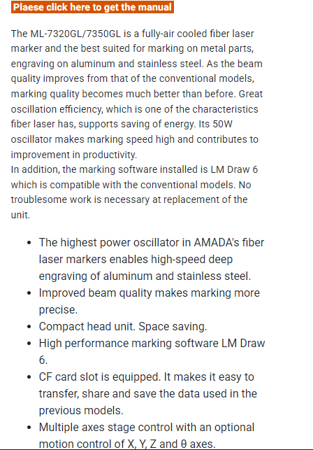 AMADA 光纖激光打標機20W/50W ML-7320GL