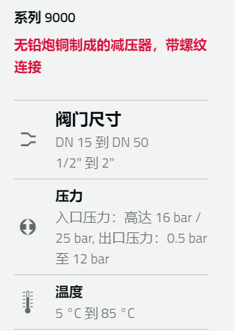 GOETZE 無鉛炮銅制成的減壓閥9000系列