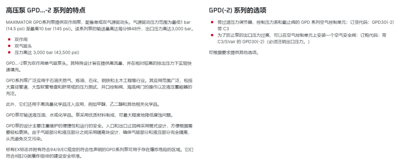 MAXIMATOR 氣動高壓泵GPD...-2系列