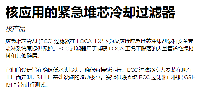 THERMON 核應(yīng)用的緊急堆芯冷卻過濾器系列