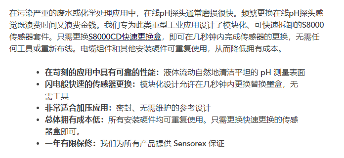 Sensorex 在線模塊化 pH 傳感器S8300系列