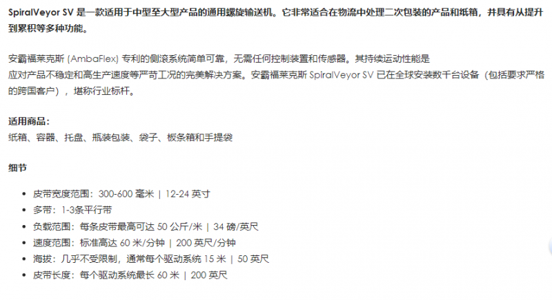AmbaFlex 通用螺旋輸送機SpiralVeyor SV