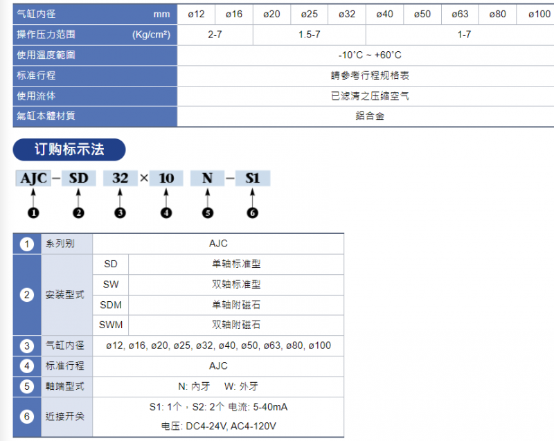 AMAC 空壓冶具缸SD. SDM單軸型系列