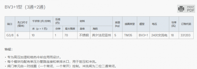 JAKSA 高壓加濕和*熱冷卻系統用電磁閥BV3+1型系列