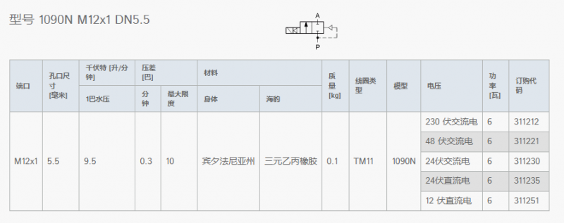 JAKSA 電磁閥1090N M12x1 DN5.5系列