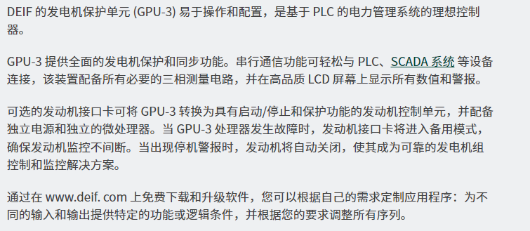 DEIF 發(fā)電機保護(hù)裝置GPU-3系列