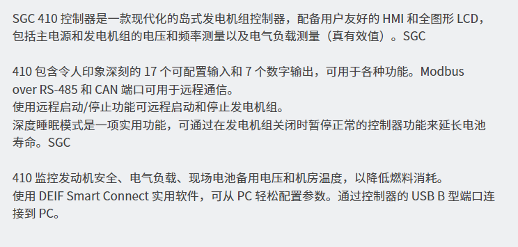 DEIF 單臺(tái)發(fā)電機(jī)組控制器SGC 410系列