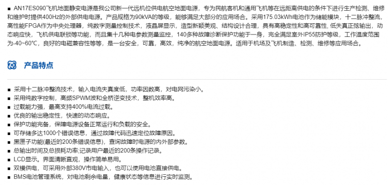 Ainuo 儲能式飛機地面靜變電源AN17ES系列