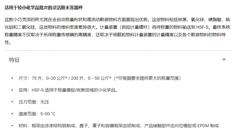 ZEPPELIN 靈活粉末容量秤HSF-S系列