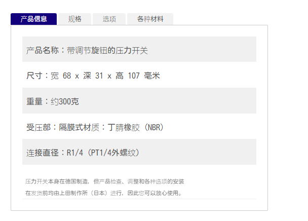 UEDA 帶調節旋鈕的壓力開關PDS系列