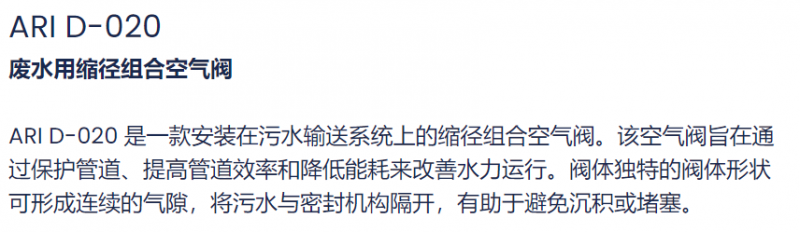 Aquestia 廢水用縮徑組合空氣閥ARI D-020系列