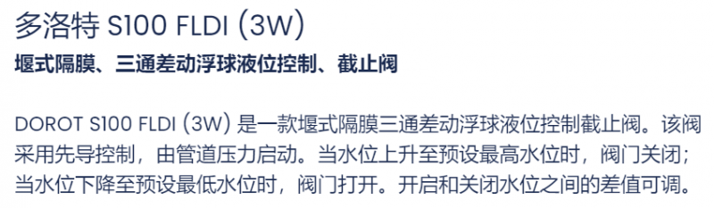 Aquestia 液位控制截止閥S100 FLDI (3W)