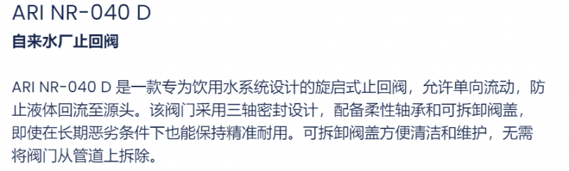 Aquestia 自來(lái)水廠止回閥ARI NR-040 D系列