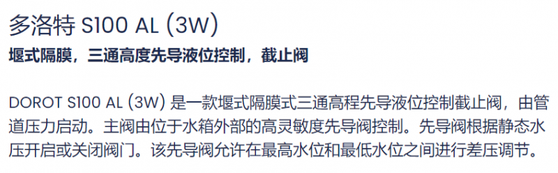 Aquestia 液壓控制閥S100 AL (3W)系列