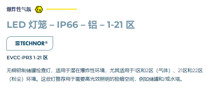TECHNOR 無銅鋁制儲罐檢查燈EVCC-PR3系列