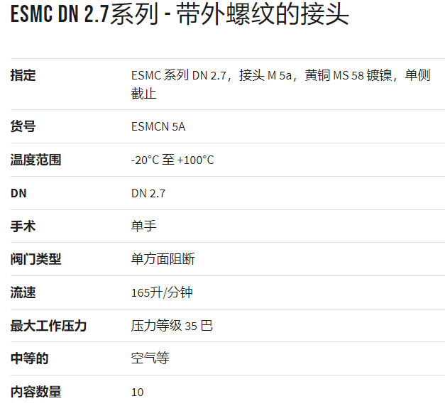 LUDECKE 帶外螺紋的接頭ESMC DN 2.7系列