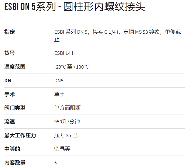 LUDECKE 圓柱形內螺紋接頭ESBI DN 5系列
