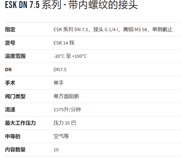 LUDECKE 帶內螺紋的接頭ESK DN 7.5系列