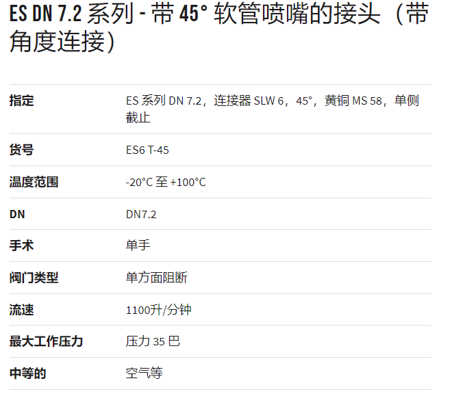 LUDECKE 帶45°軟管噴嘴的接頭ES DN 7.2系列