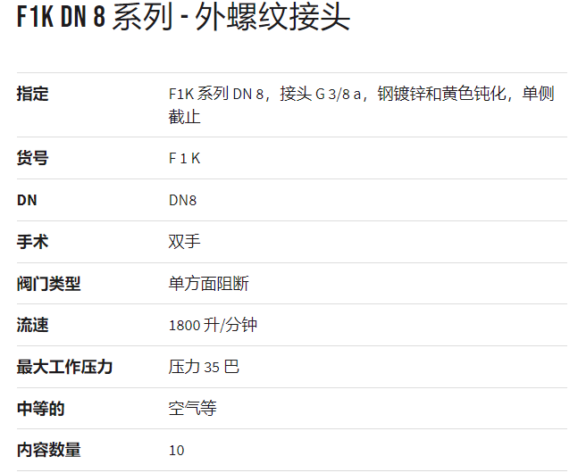 LUDECKE 外螺紋接頭F1K DN 8 系列