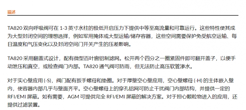 AGM 呼吸閥TA820系列