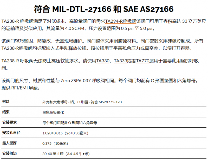 AGM 呼吸閥TA292-R系