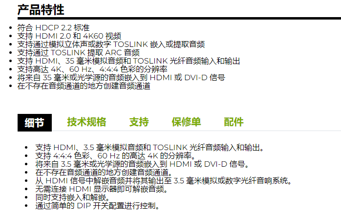 BLACK BOX 音頻嵌入器/解嵌入器HDMI 2.0系列