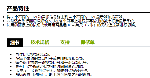 BLACK BOX 帶音頻的DVI矩陣切換器2x4系列