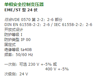 TTH 單相安全控制變壓器EME/ST 型 24V系列