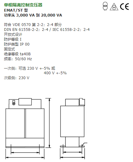 TTH 單相隔離控制變壓器EMAT/ST 型系列