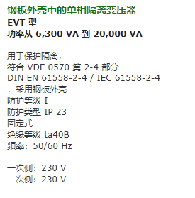 TTH 鋼板外殼中的單相隔離變壓器EVT型系列