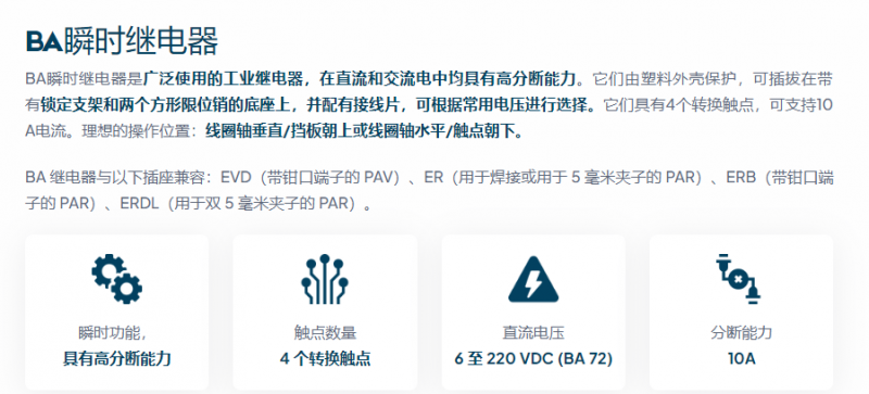 TEC AUTOMATISMES 瞬時繼電器BA系列