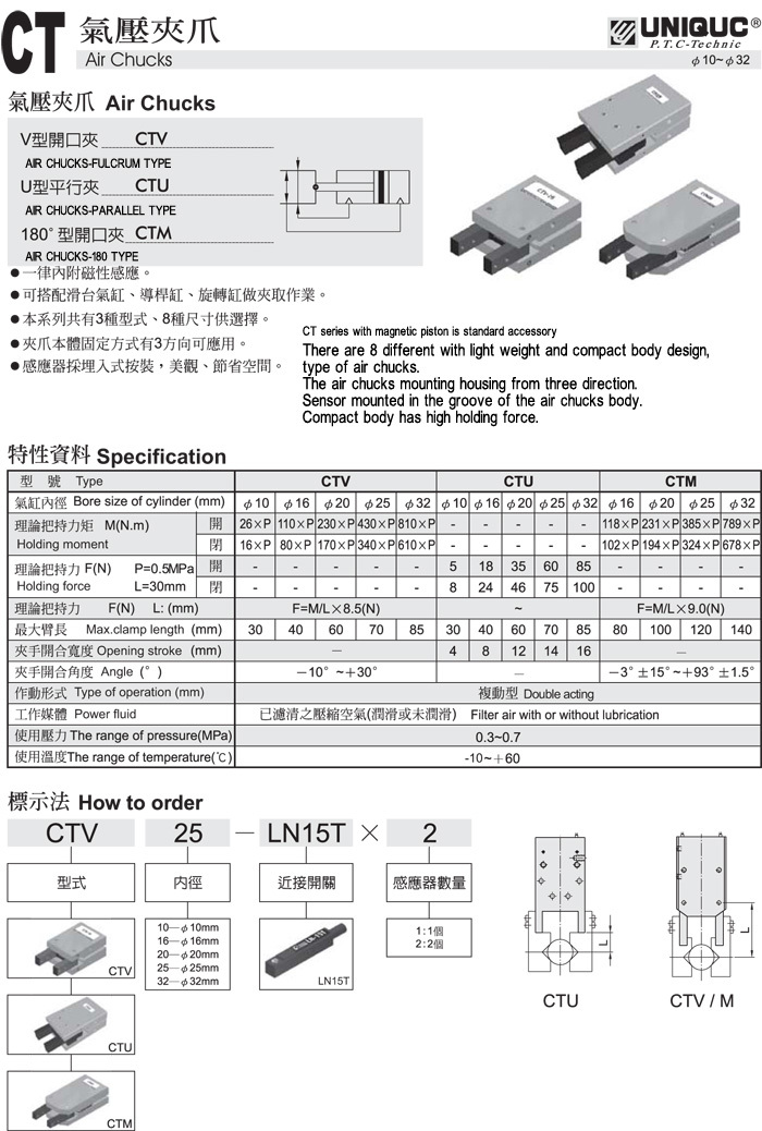 UNIQUC Y型氣壓夾爪CT