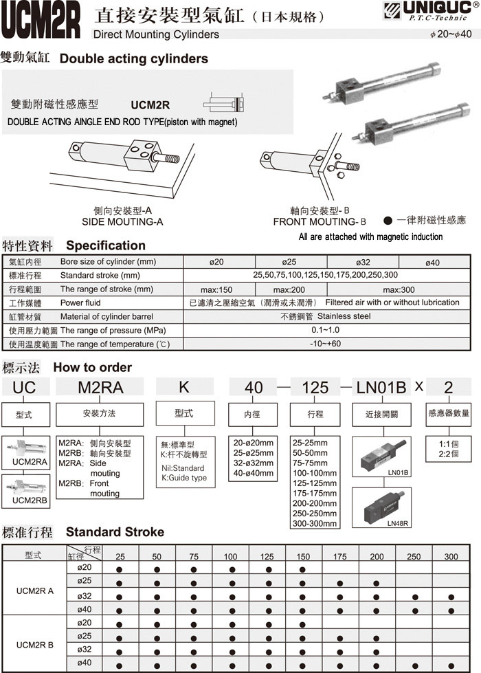 UNIQUC 直接安裝型氣缸雙動(dòng)軸向安裝型UCM2RB系列