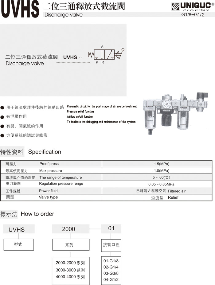 UNIQUC 二位三通釋放式截流閥UVHS2000-02系列