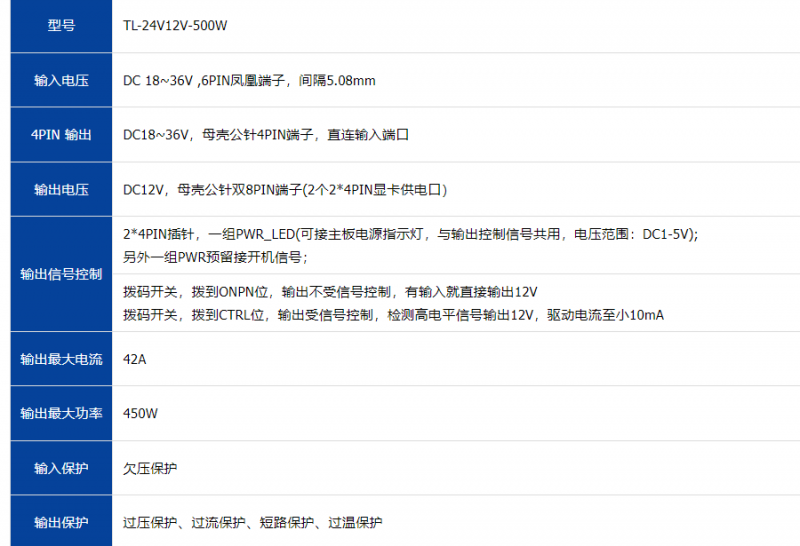 TP-IPC 電源模塊TL-24V12V-500W系列
