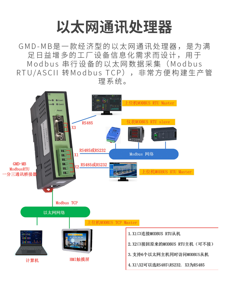 GMD modbus RTU轉modbus TCP通訊橋接器