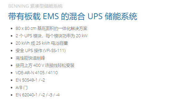 BENNING 帶有板載 EMS 的混合UPS儲能系統(tǒng)系列