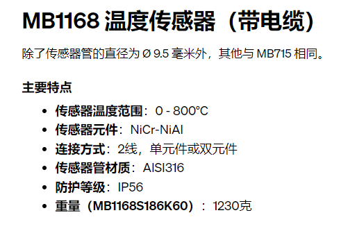 KONGSBERG 帶電纜的高溫熱電偶傳感器系列