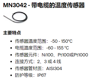 KONGSBERG 帶電纜的溫度傳感器MN3042系列