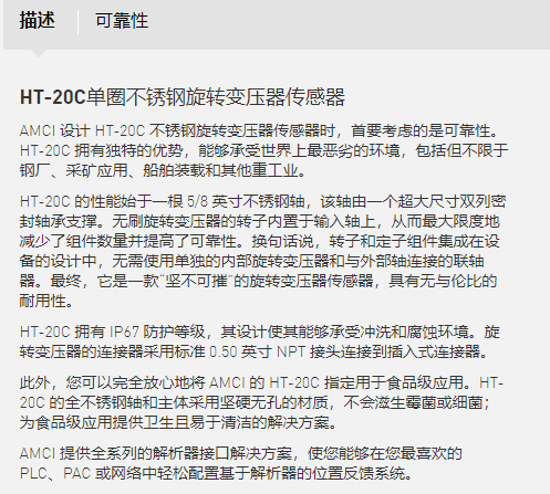 AMCI 單圈不銹鋼旋轉(zhuǎn)變壓器傳感器HT-20C系列