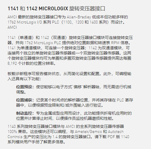 AMCI 旋轉變壓器接口模塊1141/1142系列