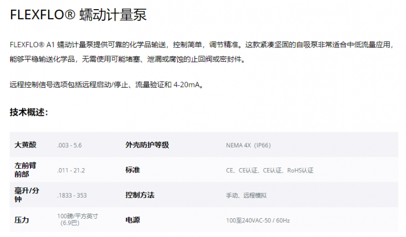 Blue White 蠕動計量泵A1系列