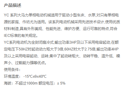 FUXING 大馬力單相電容起動異步電動機YC系列