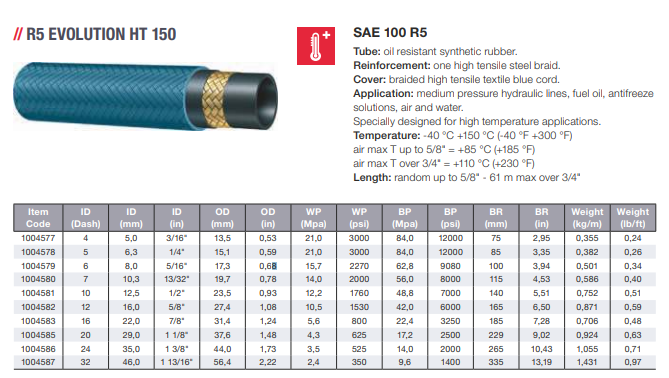 ALFAGOMMA 高溫軟管SAE 100 R5系列