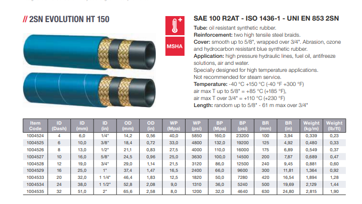 ALFAGOMMA 高溫軟管SAE 100 R2AT系列