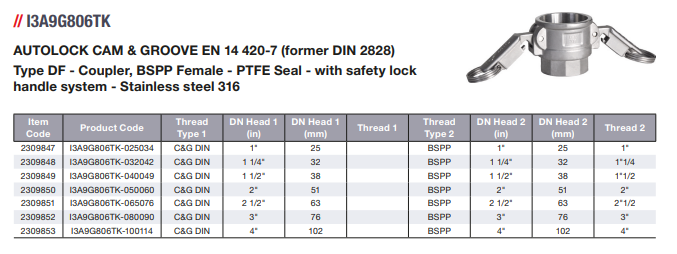 ALFAGOMMA 卡箍式快速接頭I3A9G806TK系列