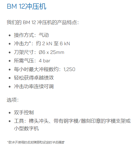 BORRIES 帶字模支架和雙手控制裝置沖壓機BM 12系列