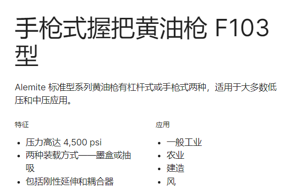 ALEMITE 手槍式握把黃油槍 F103 型系列