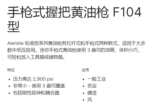 ALEMITE 手槍式握把黃油槍 F104 型系列